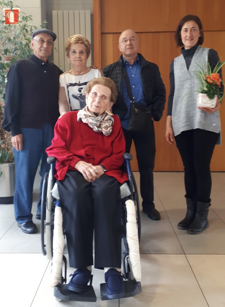 Natividad Carrión a sus 96 años es una de las madres más mayores del municipio de Aspárrena. Teresa Albizu, por su parte, se siente guapa y contenta con su familia que posee ya cinco generaciones, ya que, cuenta con 4 tataranietos. Sus hijos se sentían alegres con el pequeño homenaje que la asociación de comerciantes le ha ofrecido a su madre.