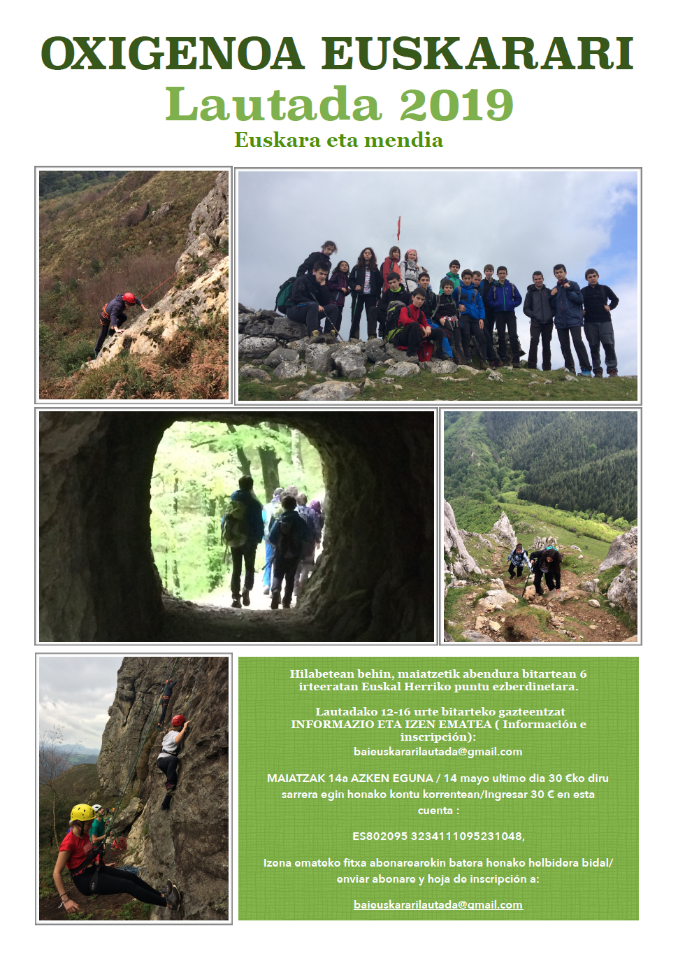 INFORMAZIO ETA IZEN EMATEA 30 €ko diru-sarrera egin honako kontu korrentean: ES80 2095 3234 1110 9523 1048, eta izena emateko fitxa abonarearekin batera honako helbidera bidali baieuskararilautada@gmail.com. Izena emateko azken eguna maiatzaren 14a.