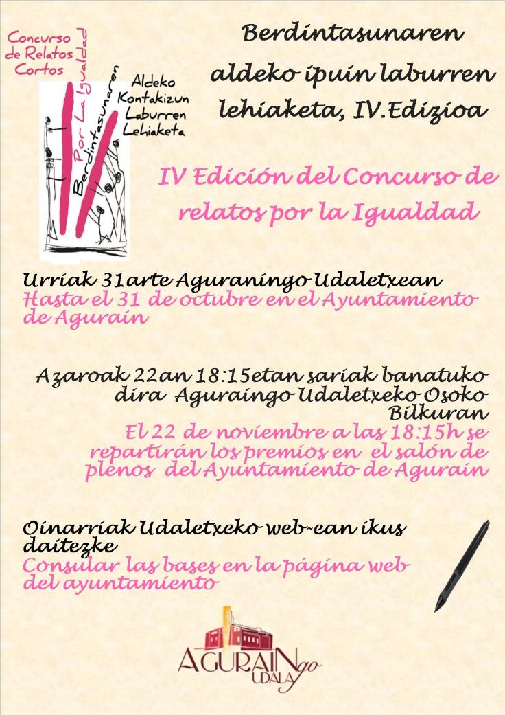 Por lo tanto, se valorarán aquellos relatos que versen sobre la igualdad de mujeres y hombres no estereotipada y alejada de roles tradicionales. Los relatos ganadores recibirán un premio y serán leídos el 22 de noviembre, aprovechando que el 25 de noviembre es el Día Internacional para la Eliminación de la Violencia contra las Mujeres.