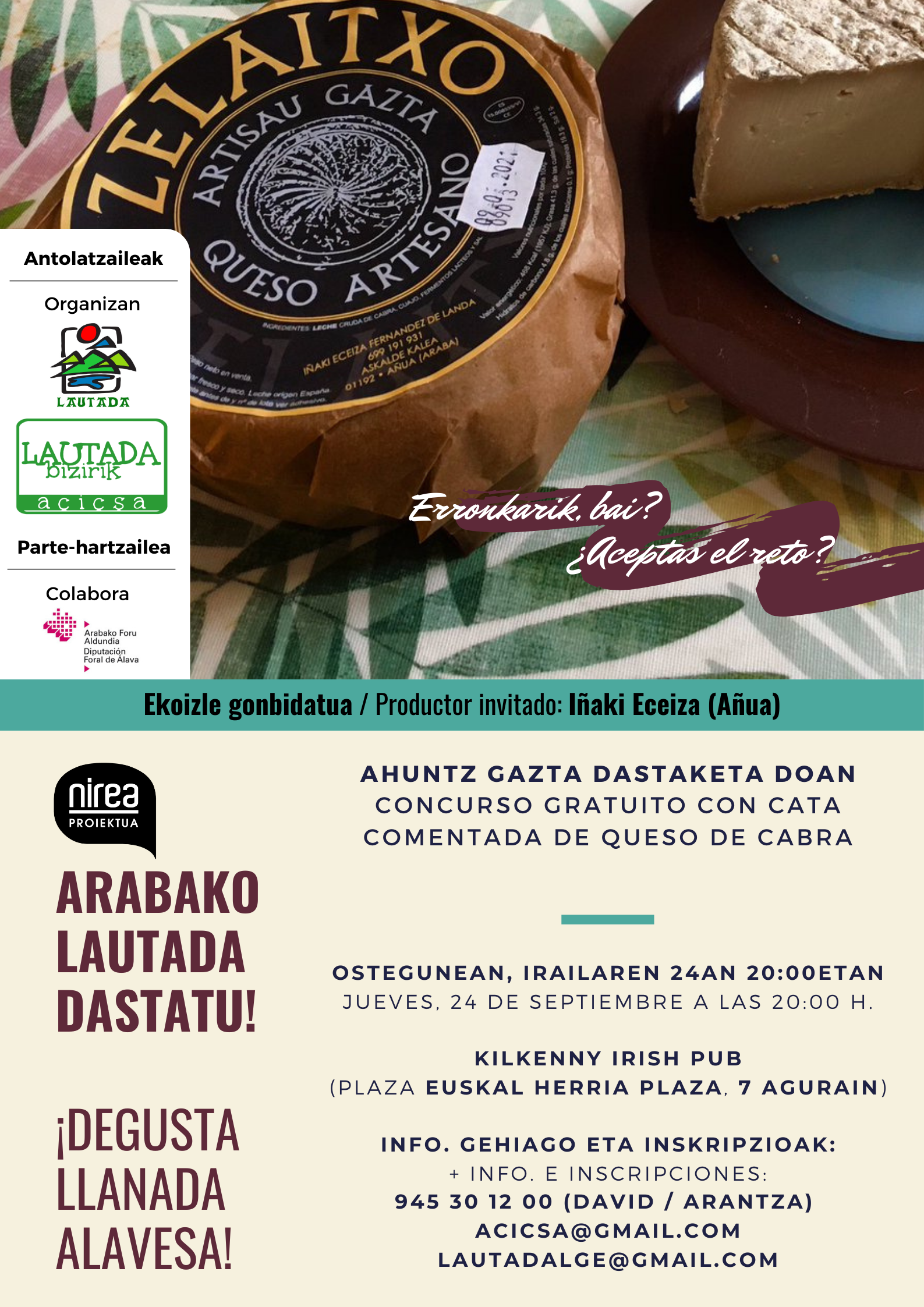Junto con la asociación de desarrollo rural ADR Lautada organizamos una nueva jornada del concurso gratuito-cata comentada ¡Degusta Llanada Alavesa! Este evento comarcal, nació de la voluntad de promocionar tanto a las personas productoras locales como a los productos que aquí se elaboran y los pequeños negocios de la comarca.
