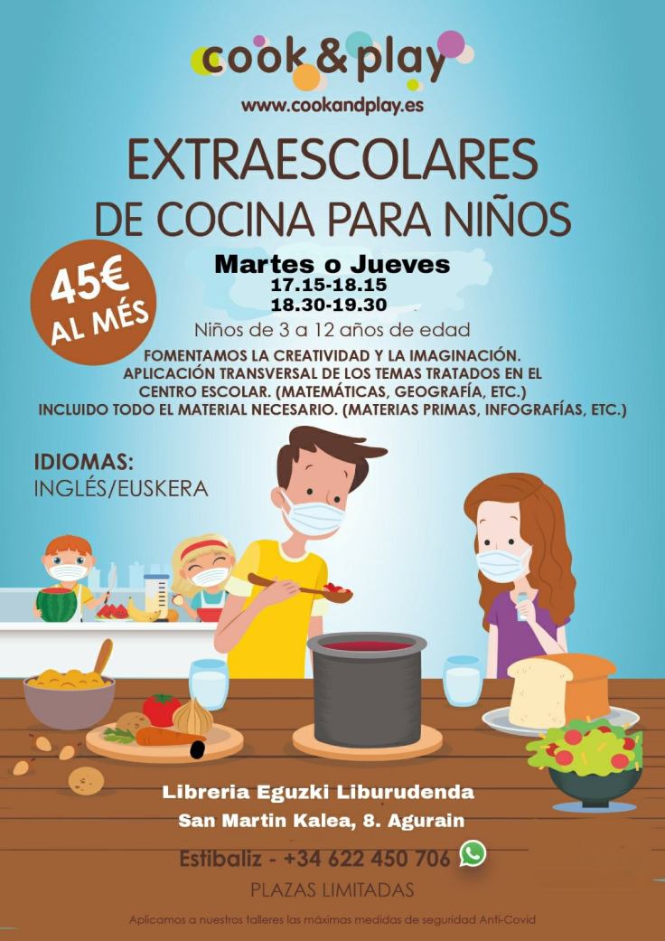 Los cursos extraescolares de cocina que se van a desarrollar en Librería Eguzki (C/ San Martín, 8 Agurain) están pensados para que el público infantil adquiera hábitos alimenticios sanos mediante la diversión en la cocina.