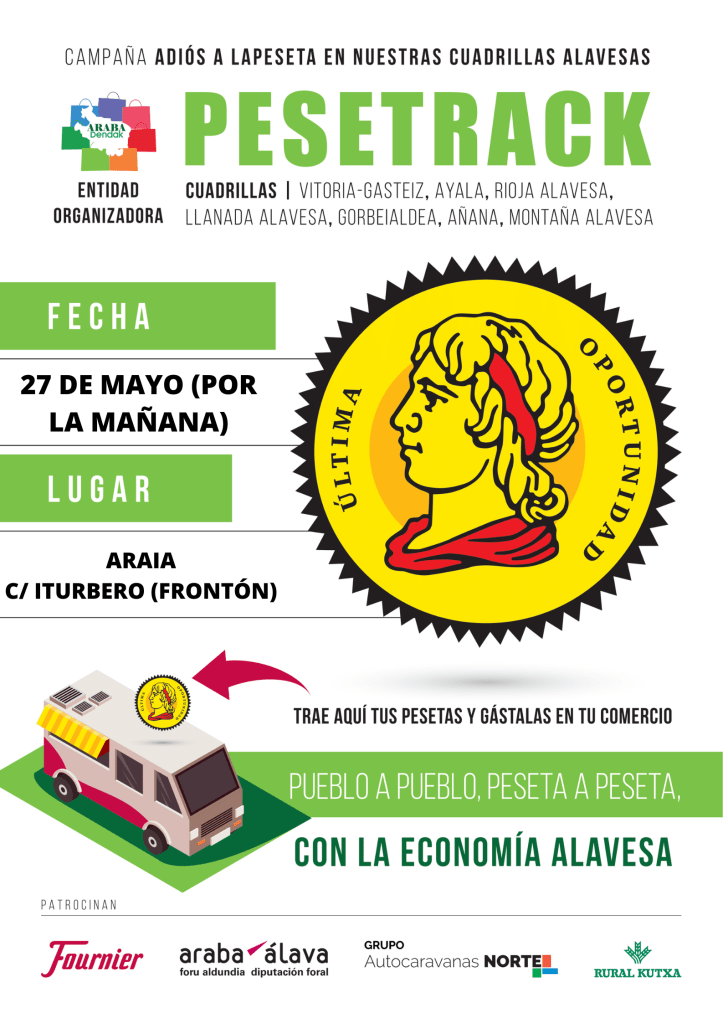 ArabaDendak ha organizado la iniciativa «Pesetrack» para volver a dar valor a la vieja peseta e impulsar el consumo en los establecimientos locales. Recogerá tus pesetas y podrás cambiarlas por vales de compra canjeables en los locales adheridos.