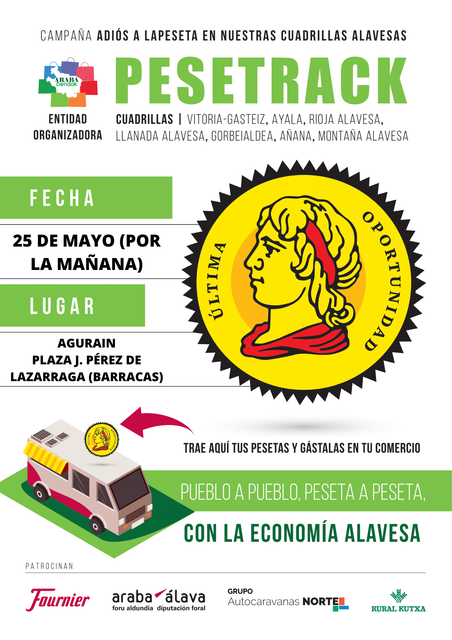 ArabaDendak ha organizado la iniciativa «Pesetrack» para volver a dar valor a la vieja peseta e impulsar el consumo en los establecimientos locales. Recogerá tus pesetas y podrás cambiarlas por vales de compra canjeables en los locales adheridos.