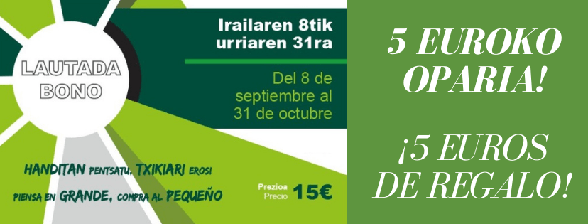 500 LAUTADA BONO jarri ditugu zirkulazioan. Azkar ibili eta ez geratu zureak gabe! 4 LAUTADA BONO metatu ahal izango dituzu erosketa berean.