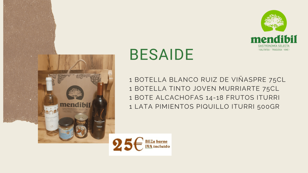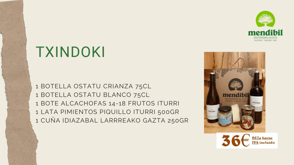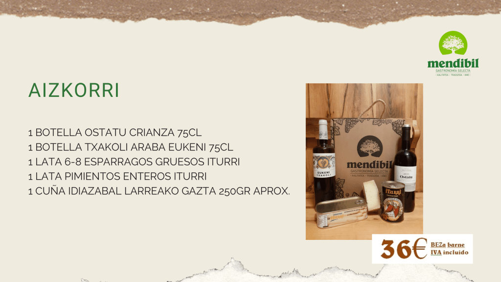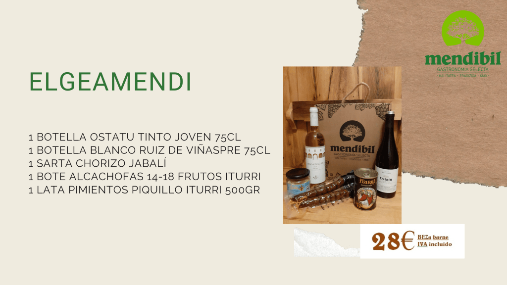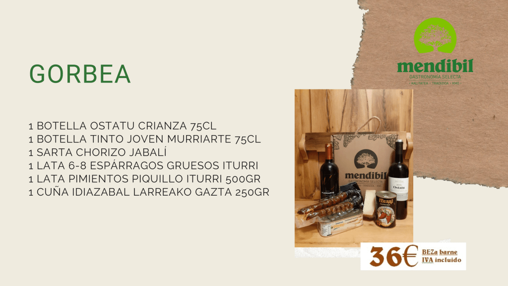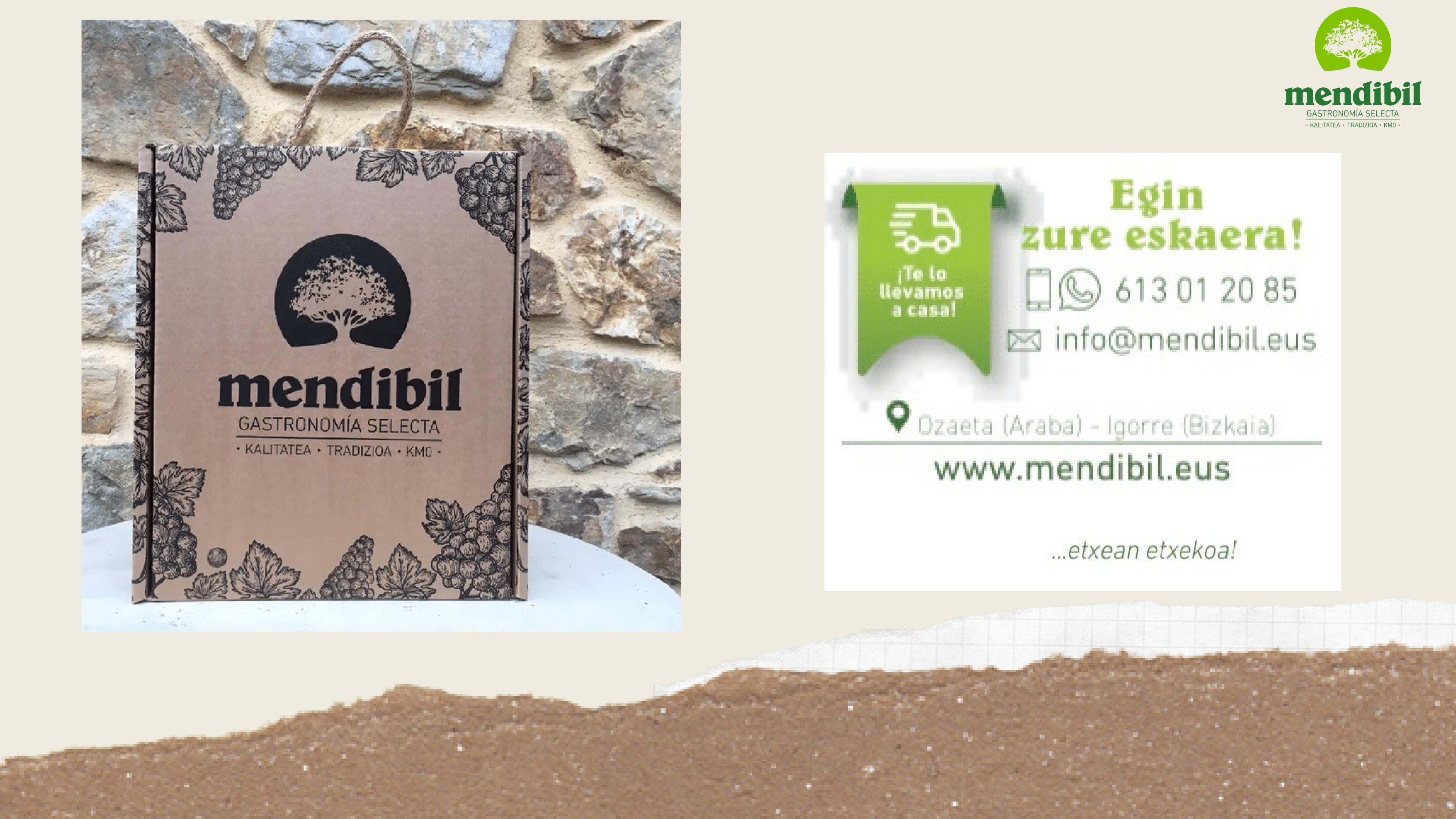 Cestas de Mendibil Gastronomía (Ozaeta Tel.: 613 01 20 85) de la máxima proximidad y de personas productoras para que disfrutes de su sabor. ¡Acertarás seguro!