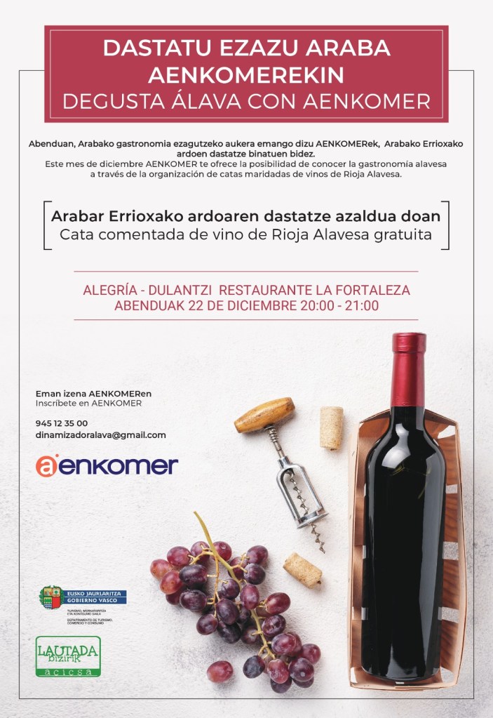 Cata comentada gratuita de vinos de Rioja Alavesa maridada con pintxos de Restaurante La Fortaleza (C/ Cuesta de las Cabras, 2 Alegría-Dulantzi)
