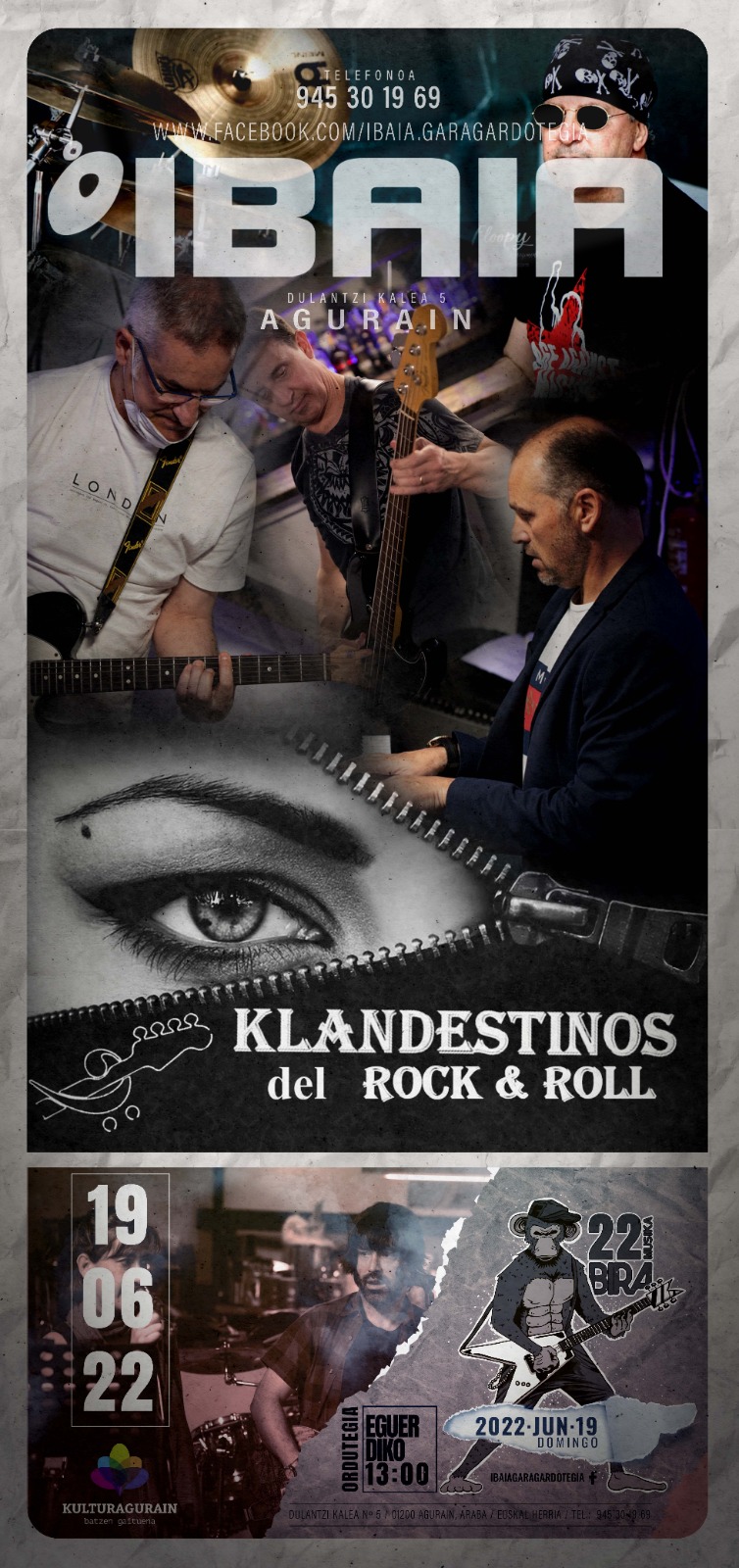 Ibaia Garagardotegiko giroaren parte da (Dulantzi k., 5 Agurain)! Igande honetan, ekainaren 19an, 13:00etan «Klandestinos del Rock & Roll» kontzertua izango da.