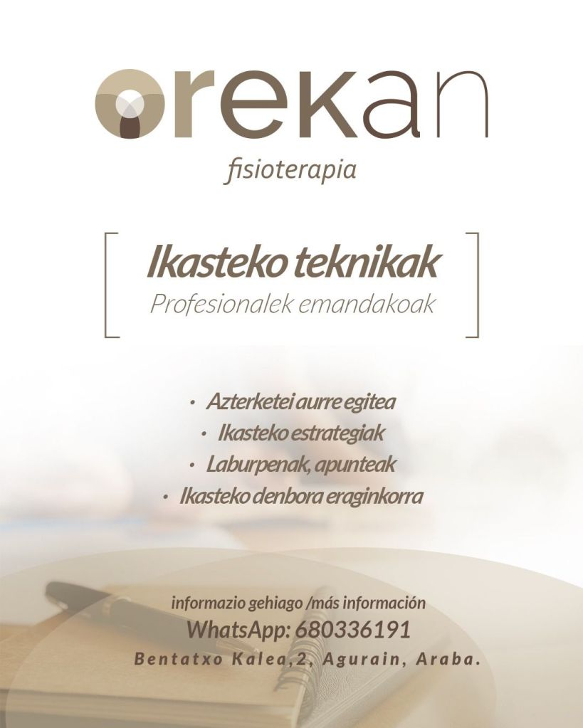 Orekan Fisioterapia (Bentatxo kalea 2, Agurain) diziplina anitzeko zentroa da, batez ere fisioterapiako hainbat espezialitatetako tratamenduetara bideratua, beste osasun-diziplina batzuekin batera, eta, horrela, ahalik eta arretarik onena eta handiena ematen dizu. Tratamendu indibidualizatua eta osoa modu pertsonalizatuan bilatuz.