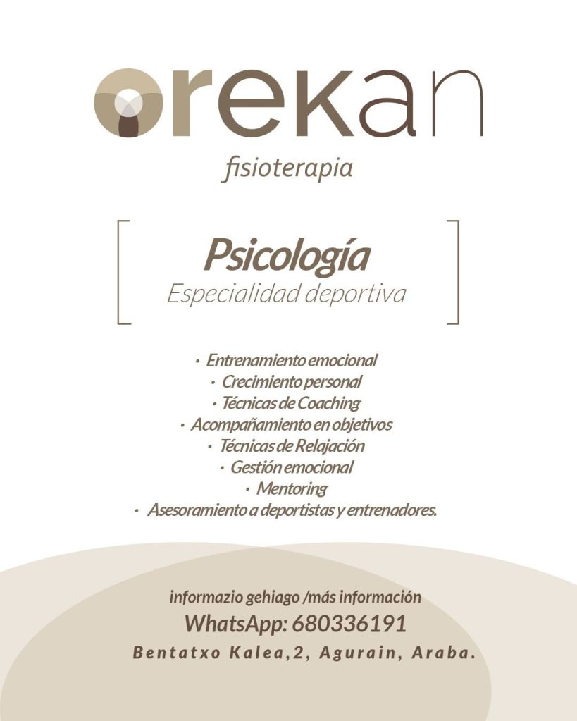 Orekan Fisioterapia (C/ Bentatxo, 2 Agurain) es un centro multidisciplinar, principalmente enfocado a tratamientos de diversas especialidades de fisioterapia junto con otras disciplinas sanitarias, dándote así la mejor y mayor atención posible. Buscando de una manera personalizada un tratamiento individualizado y completo.