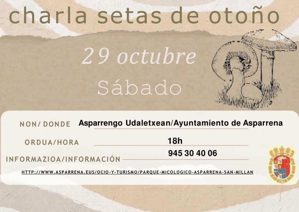 Urria perretxikoen hilabetea da. Udazkena iristearekin batera, onddo preziatuak gure mendietara itzuliko dira, eta haiekin batera, Asparrenako Udalak denboraldi honetako perretxikoei buruzko hitzaldia antolatu du.