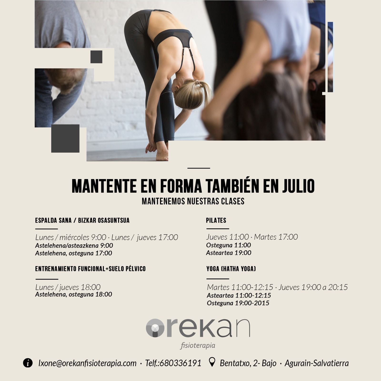 En Orekan Fisioterapia (C/ Bentatxo, 2 Agurain) encuentras cursos especiales tanto para trabajar el suelo pélvico como la espalda, si es que sufres algún dolor. ¡Disfrútalas mientras practicas!