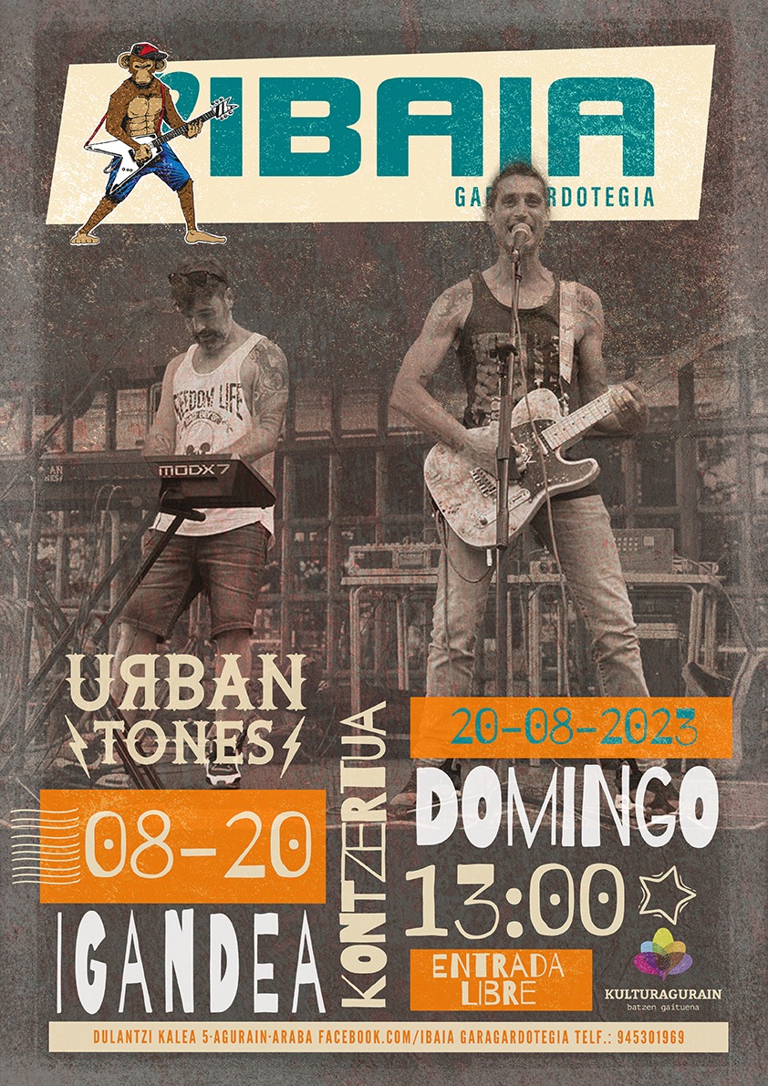 Este domingo 20 de agosto Urban Tones lo darán todo en el Ibaia Garagardotegia (C/ Dulantzi, 5 Agurain). ¡Bravo por este planazo!