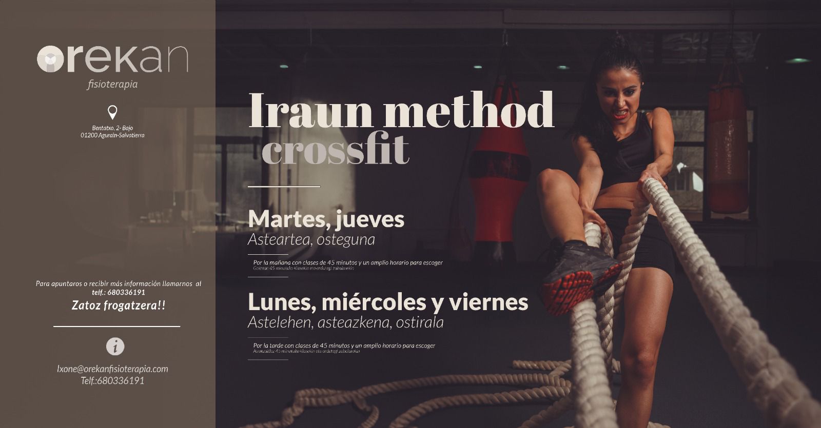 Orekan Fisioterapia (Bentatxo k., 2) Agurainen duzun entrenamendu-zentroa orain arte ikusi duzunarekiko guztiz desberdina da. Zure helburuen alde lan egiten dute zentzurik gabeko errutina ospetsuetara jo gabe.