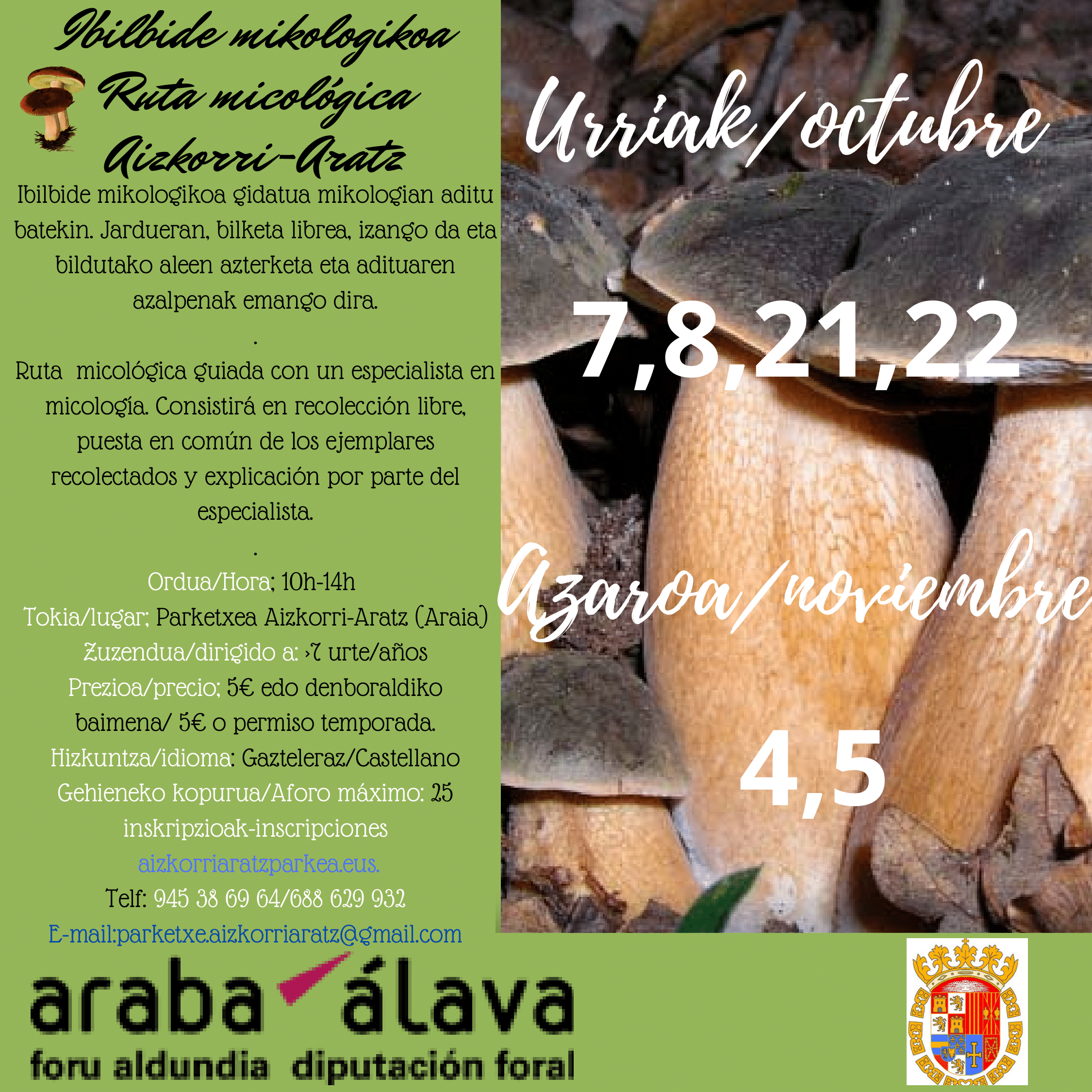Ibilbide mikologikoa gidatua mikologian aditu batekin. Jardueran, bilketa librea izango da eta bildutako aleen azterketa eta adituaren azalpenak emango dira.