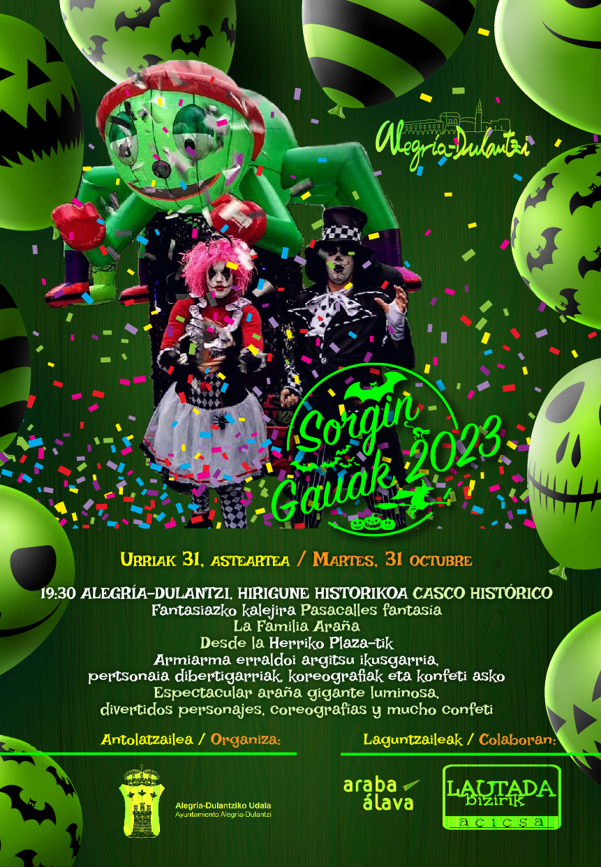 ¡Prepárate para una experiencia aterradora como ninguna otra! El Festival de Terror Sorgin Gauak está de vuelta este año para llevarte a un mundo lleno de misterio, emoción y sustos. Con el apoyo de la Diputación Foral de Álava y los ayuntamientos de Alegría-Dulantzi, Asparrena y Agurain, este evento promete ser más espeluznante que nunca.