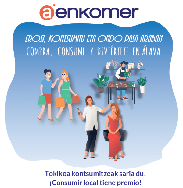 AENKOMER Arabako Merkataritza eta Zerbitzuetako Enpresariek, Arabako Foru Aldundiarekin lankidetzan, kanpaina bat antolatu dute Arabako establezimenduetan zu sentsibilizatzeko eta kontsumitzera bultzatzeko. Kanpaina horretan, sarien zozketak egiten dira, baldin eta sare sozialetan elkarreragiten baduzu. Arabako Lautadako establezimenduetan kontsumitzen jarraitzen du, jakinda hurbileko eta kalitatezko zerbitzuak mantentzen laguntzen duzula eta, elkarrekin eta elkartuta, eskualde biziagoa eta seguruagoa... Leer más →