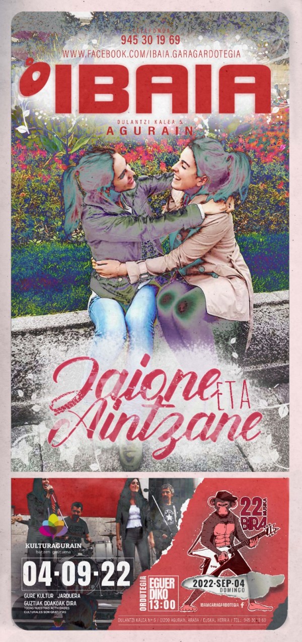 Igande honetan, irailaren 4an, eguerdiko 13:00etan Jaione eta Aintzaneren doako kontzertua Ibaia Garagardotegian (Dulantzi k., 5 Agurain). Eskerrak eman nahi dizkiogu Ibaia Garagardotegiari kulturaz beteriko uda honetan bere kontzertuez gozatzerakoan erakusten duten gustuagatik. Ekitaldien programazioak igande honetan jarraituko du. Han elkartuko gara? Kontzerturako gogoa! Este domingo 4 de septiembre a las 13:00 h. del mediodía... Leer más →