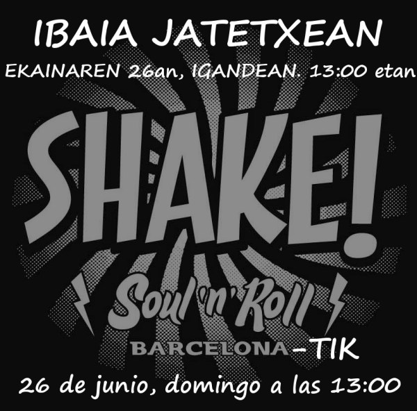 Shake! Soul'n'roll dará ritmo a tu vermouth del domingo a partir de la 13 h. en Ibaia Garagardotegia (C/ Dulantzi, 5 Agurain). Risas, amigos/as y Soul'n'Rock por todo lo alto. ¡Buenos augurios! Banda barcelonesa de soul y rock'n'roll primitivo,que tiene como maximos referentes el espiritu y la energia de los artistas/bandas de finales de la... Leer más →