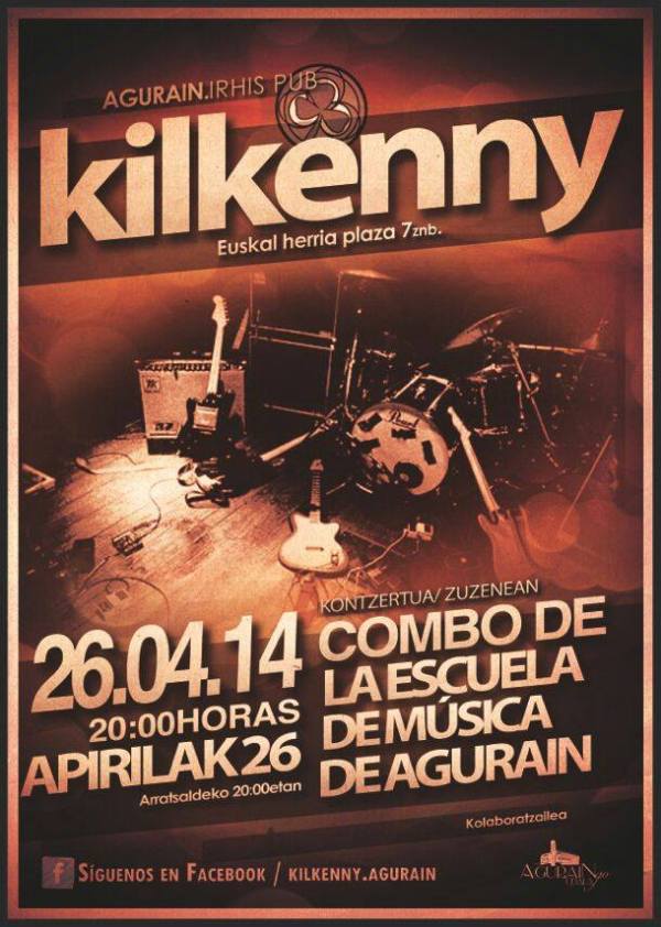 Este sábado a partir de las 20 h. disfruta del concierto en directo del Combo en la Escuela de Música de Agurain en Kilkenny Irish Pub (Plaza Euskalherria, 7 Agurain). Disfruta de la buena música en Kilkenny Irish Pub.