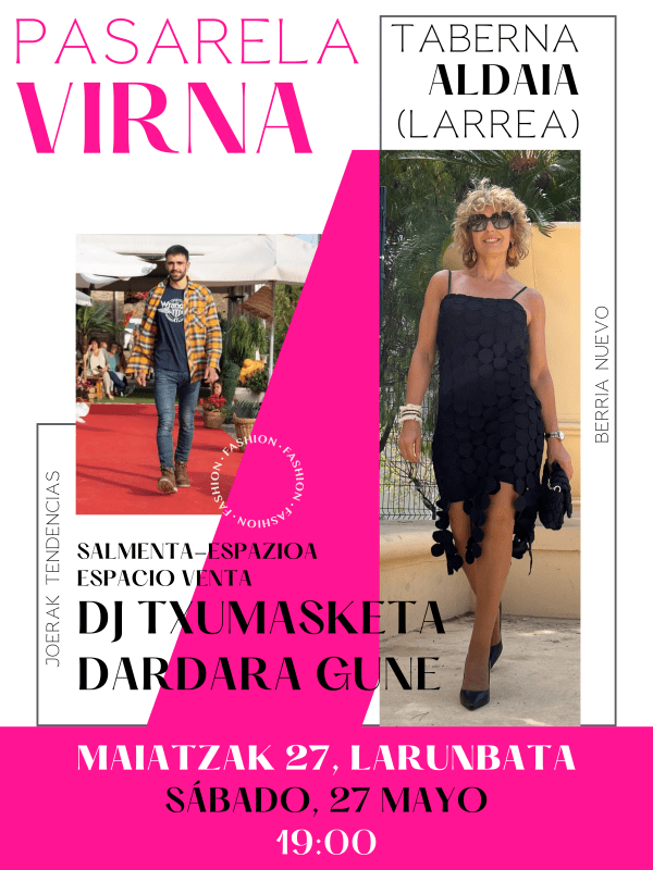Ospakizun handia Aldaia Tabernan (Ermitaurre kalea, Larrea)! Virna Moda eta Osagarriek moda pasabide berri bat ospatuko dute. Desfilean Dardara Estudioren moda eta dantza izango dira nagusi, desfile baten kontzepzio tradizionala hautsiz. Udaberria/uda bildumaren inspirazioa Arabako Lautadako paisaiatik eta folkloretik dator. Testurak, lore-motiboak, estanpatuak edo erliebeak... distira handiko akaberekin edo kolore leunenetaraino iristen den paleta kromatikoarekin... Leer más →