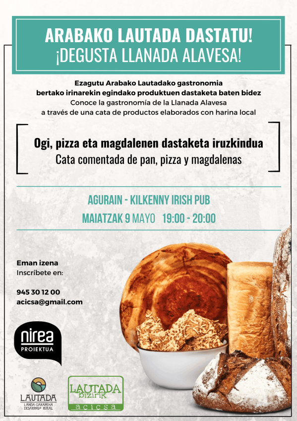 ADR Lautada landa-garapeneko elkartea "Lanirina" proiektua garatzen ari da, Arabako Lautadan landu eta ehotako gari ekologikoaren irina, eta horrekin hainbat ogi, madalena eta pizza egingo dira. Parte hartu "Arabako Lautada Dastatu" ren edizio berrian! Horrela, tokiko produktu berri bat hurbilduko dizugu, ekoizleen eta gaian adituak diren pertsonen eskutik ikasteko eta dastatzeko. Datorren asteartean, maiatzak 9,... Leer más →
