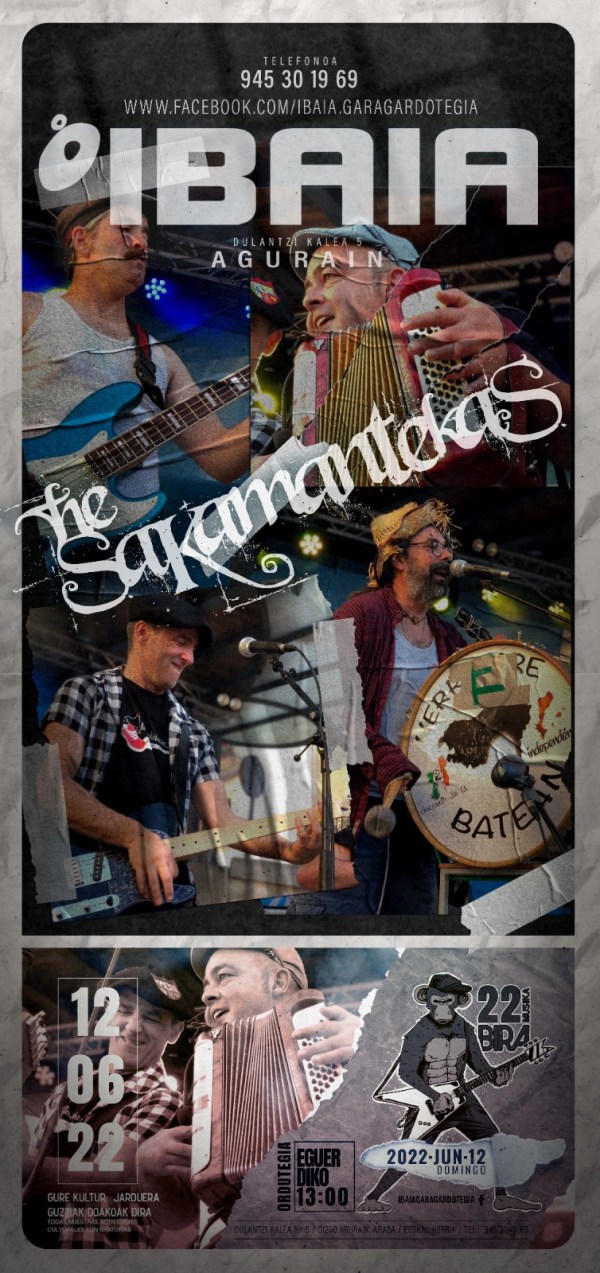 Igande honetan, ekainaren 12an, eguerdiko 13: 00etan The Sakamantekas taldearen kontzertua. Vermouth patatero Ibaia Garagardotegian (Dulantzi k.,5 Agurain)! Fenomenoa! Este domingo 12 de junio a las 13:00 h. del mediodía concierto de The Sakamantekas. ¡Vermouth patatero en Ibaia Garagardotegia (C/ Dulantzi, 5 Agurain)! ¡Fenómeno!