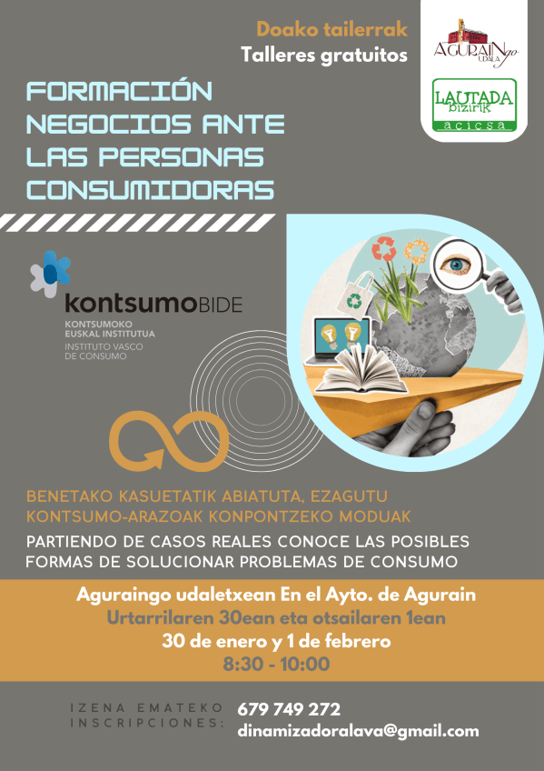 Arabako Lautadako establezimenduetako langileei eta ekintzaileei zuzendua, kontsumo-araudiak nola funtzionatzen duen eta zure negozioan zer ondorio dituen jakin nahi dutenei, zure publikoari aitortzen zaizkion eskubideei dagokienez. Zer gaitasun eskuratuko ditut? Kontsumitzaileen oinarrizko eskubideak eta legezko betebehar nagusiak identifikatzeko gai izango zara Kontsumo-kontratuetan zein klausula mota ez diren onartzen jakingo duzu Zure produktuek edo zerbitzuek eragindako... Leer más →