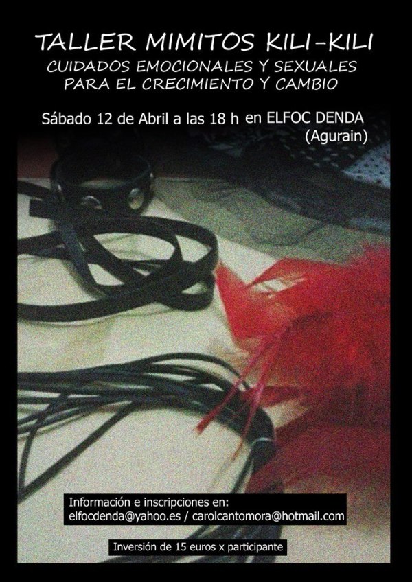 El Foc Denda te propone un taller muy divertido que te ayudará a conocerte más a ti misma: Taller Mimitos Kili-Kili, donde se hablarán de cuidados emocionales y sexuales para tu crecimiento y cambio. El taller tendrá lugar el 12 de Abril a las 18 h. de la tarde en El Foc Denda (C/ Mayor, 12... Leer más →
