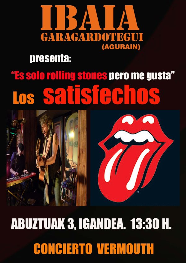 Mick Jagger y su banda sonarán en Ibaia Garagardotegia en el vermouth del domingo 3 de agosto. Un tributo a los más grandes del rock, a los únicos The Rolling Stones, de la mano del grupo Los Satisfechos. El dúo compuesto por Alejandro Ferreira y Koldo Uriarte se bastan de su piano y guitarra acústica... Leer más →