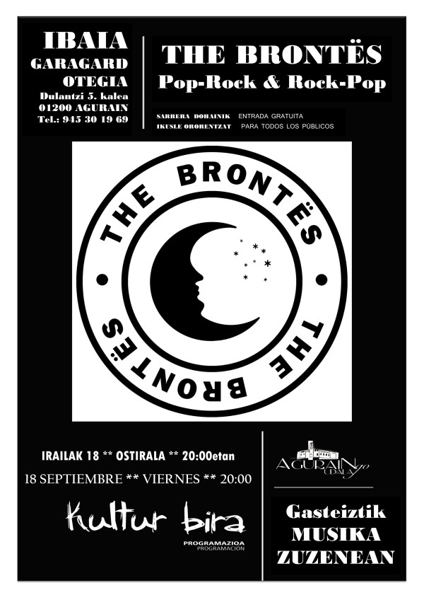 Ibaia Garagardotegia (C/ Dulantzi, 5 Agurain) se enorgullece de poder presentarte a The Bröntes, que sonarán a ritmo de pop-rock, que tanto les caracteriza. El trío gasteiztarra presentará su último trabajo. Este viernes, 18 de Septiembre, a partir de las 20 h. sus integrantes no dudarán en mostrar su visión amateur de la música, lo... Leer más →